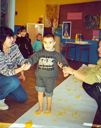 Puis on a trempé nos pieds dans la peinture et on a marché