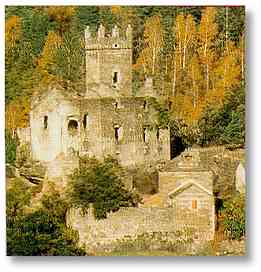 Living room with sofa, armchairs, fireplace and TV. Terrace with